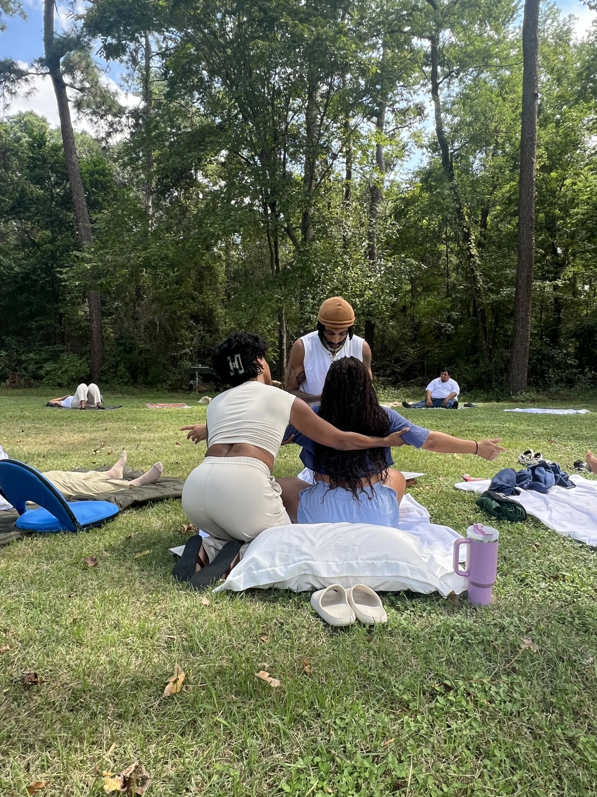 • Facilitator leading a sacred plant medicine ceremony outdoors in Houston, TX